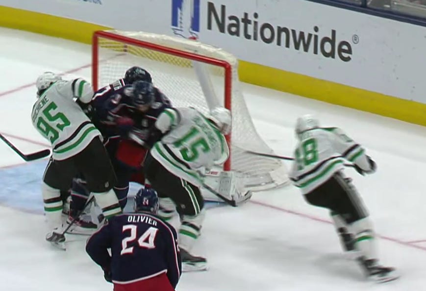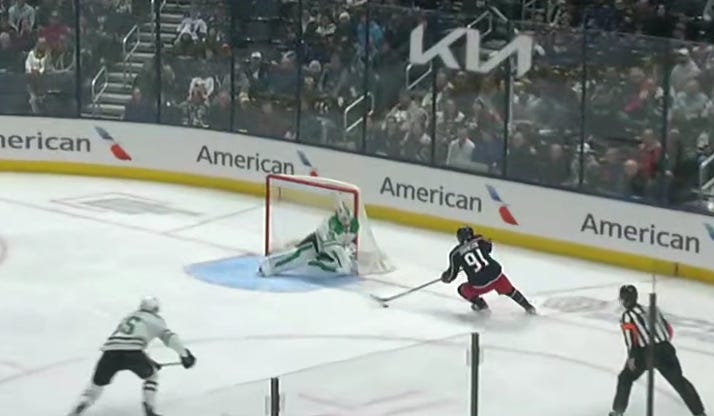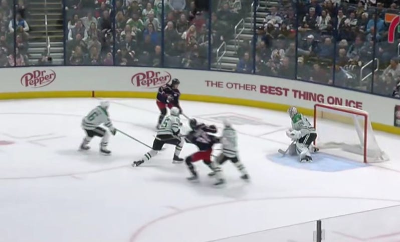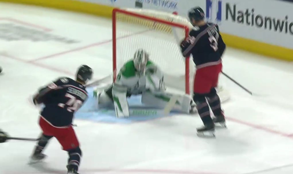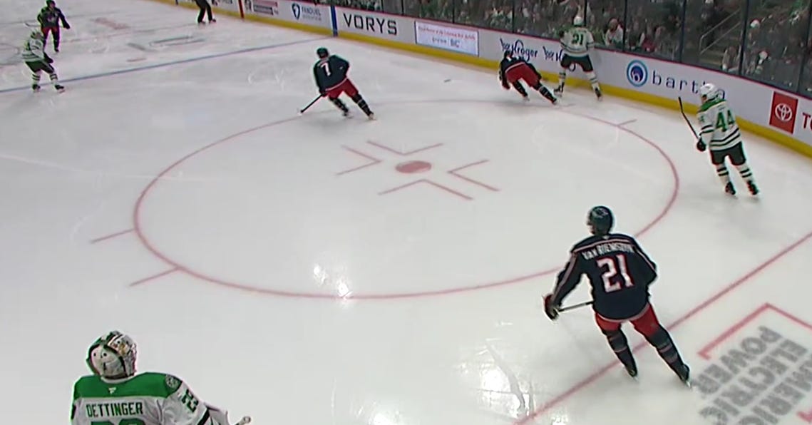 It also stemmed from a turnover after the Stars attempted a clear along the wall, so you have to give Columbus credit for winning the puck to begin with, too.
