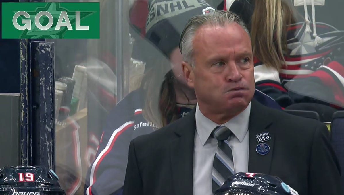 But even after Dallas spotted Columbus a two-goal lead, the Stars still made a game of this one, repeatedly. That led to this expression on Dean Evason’s face, which perfectly encapsulates the experience of coaching a flawed team that has a lot going for it in the long run, but has been dealt a bitter hand this year (to put it lightly):