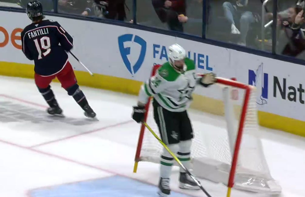 But further efforts wouldn’t generate a result, and Adam Fantilli would seal the game in the final minute. A gassed Mikael Granlund couldn’t beat out Dmitri Voronkov for an icing call, and Voronkov would feed Fantilli all alone in front for the dunk, after which a disgusted Jamie Benn promptly shoved the net off its pegs and skated away.