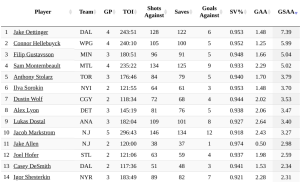 Oettinger’s performance is even more impressive when you look at goals saved above average (GSAA) per Natural Stat Trick, where Oettinger also ranks 1st in the league with 7.39 goals saved above the average a goalie facing the same chances would allow. Check out a List of Numbers and Names, included here for your convenience!