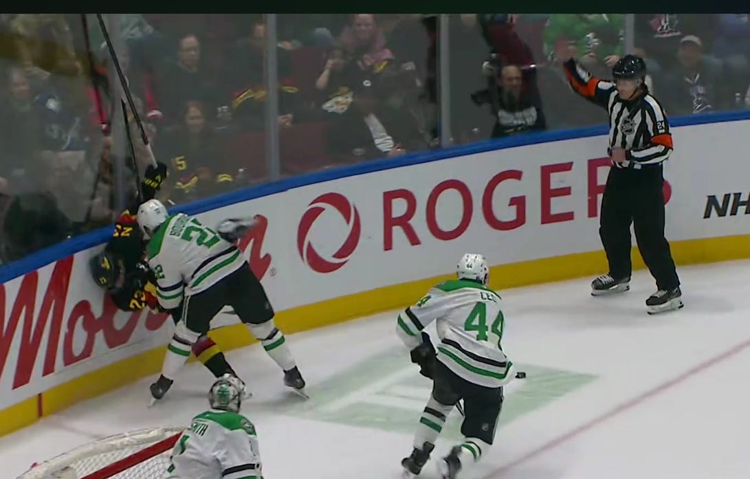It wasn’t the sort of call you like to see a back referee make when the near official opts out, but the Stars made it through the penalty because Canucks.