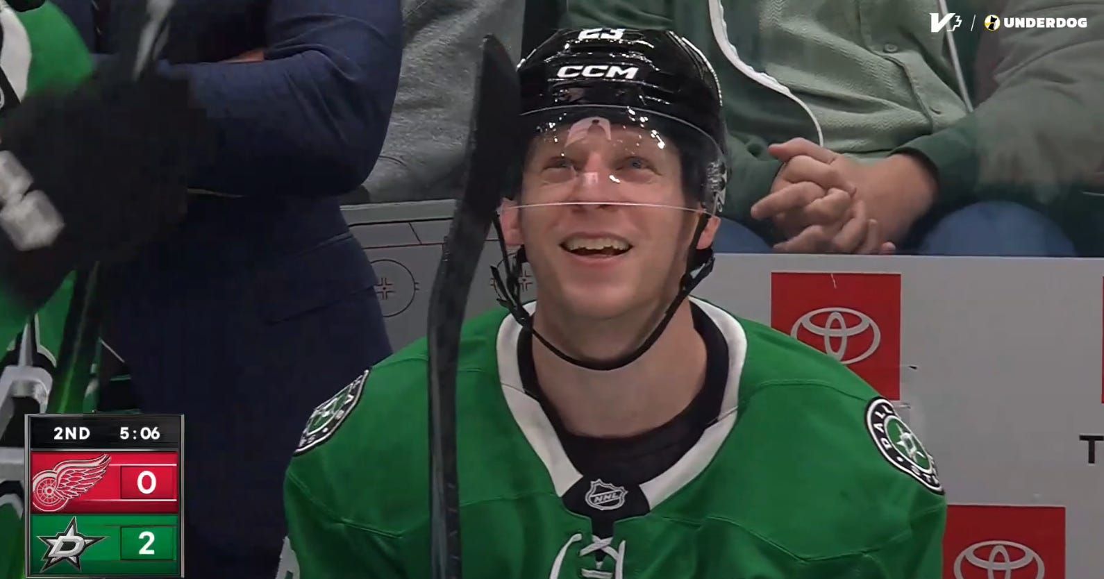 He stayed in, but Lucas Raymond took another penalty by getting his stick into Bunting’s hands, and the Stars had a brief 5-on-3 that Johnston nearly scored on. But despite Bunting putting another shot off the crossbar, Dallas remained only two goals ahead.
