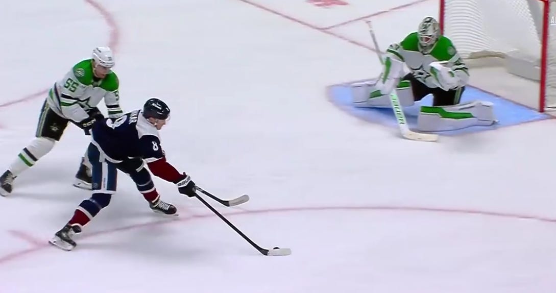Mikael Granlund got a better chance at even-strength when he a post right after the power play, and Matt Duchene led another rush just after that to nearly restore the Stars’ lead. But despite getting some momentum, the Avalanche would get the next goal when Val Nichushkin got open on the weak side and walked up to the hash marks and fired a puck top shelf on a Brock-Nelson-Screened Oettinger. The whole play was kept alive by a slick bit of work from Cale Makar, though. It turns out, having your best defenseman in these big games is a very good thing.
