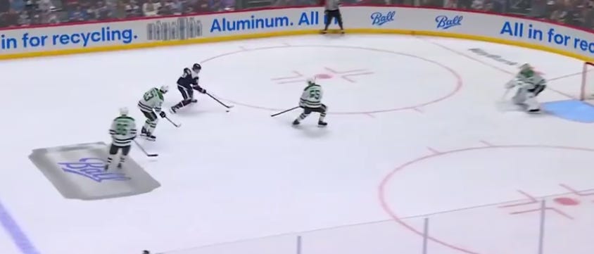 On the overtime goal, I’ll give you a short summary of what I break down toward the end of this piece. In essence, the Stars threw away their first possession by a disjointed attack that resulted in an offside. It’s annoying, but it’s also a result of a new trio (Rantanen being on the ice) not quite being in sync yet. They went back to another face-off, and the Avalanche won it (they outplayed Dallas on the dots in this one), and Makar make a great singlehanded play. Superstar players can do that, you know.