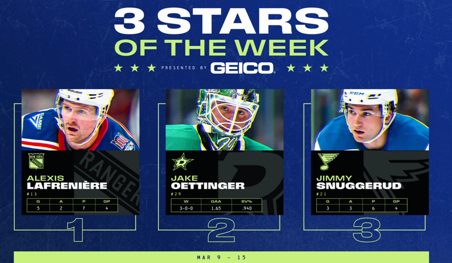 That’s true, too. After both of the first two periods, the Stars were the better team, but they just couldn’t manage to reach an intermission with a lead, despite getting chance after chance.