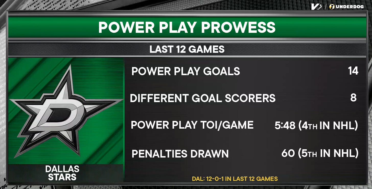 Trivia: Can you name all eight of the different power play goal-scorers over the Stars’ twelve-game stretch?