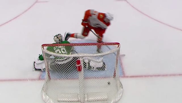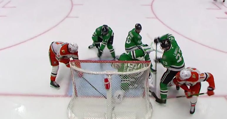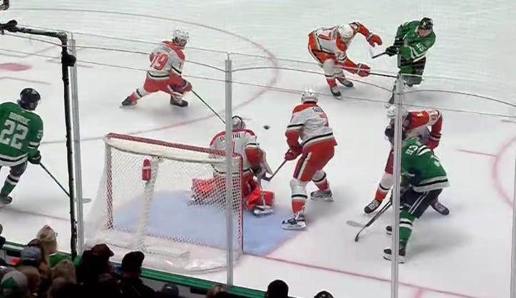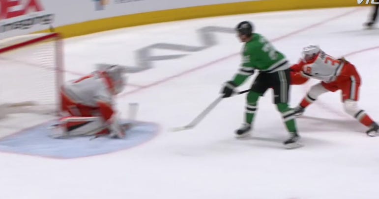 The Stars would restore the (im)balance immediately when Mikael Granlund took a slick Duchene cross and beat Lukáš Dostál in a spot from which golaies would prefer never to get beaten: the near post. For proof, here is a terrible, low-res screecap. I bet you can find the puck.