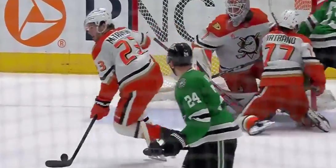 Still, Dallas kept the pressure on from there, with the Ducks’ defensive coverage repeatedly breaking down in the face of the attack. Jamie Benn played catch with Wyatt Johnston, eventually ripping a snap shot from the slot that Dostál just barely caught up to.