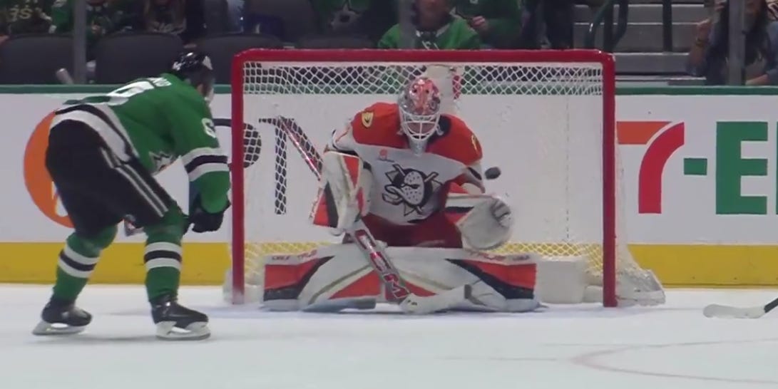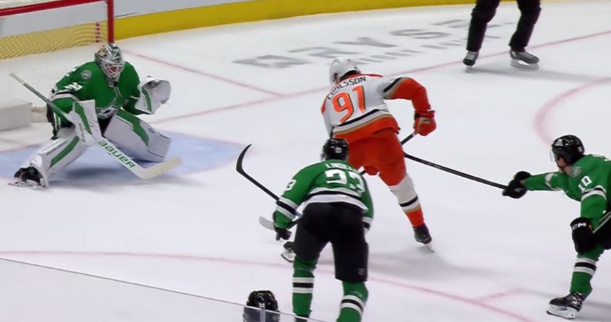 The post followed Oettinger’s example when it made a game-saving stop of its own to deny Killorn on a chance just as dangerous as LaCombe’s. Dallas’s defensive coverage had managed to mirror Anaheim’s earlier in the game, which is no easy feat. Or at least, it oughtn’t to have been.