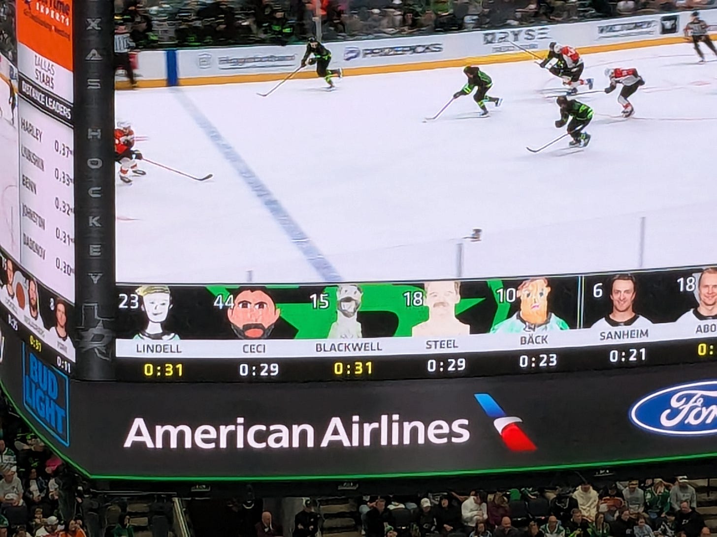 In any case, the Stars’ penalty kill made it to the intermission without surrendering a goal. They had put three shots on goal, all of them from defensemen, and they had a two-goal lead. Hockey is funny, sometimes.