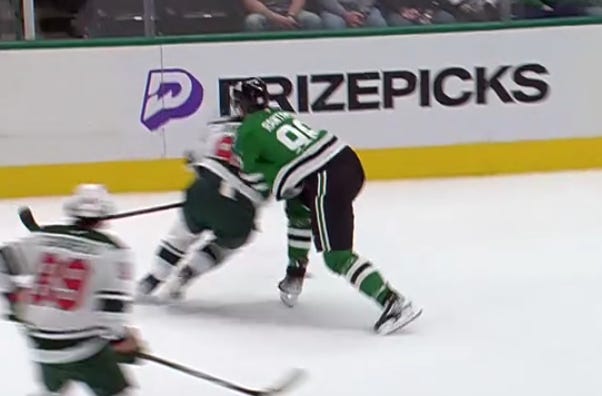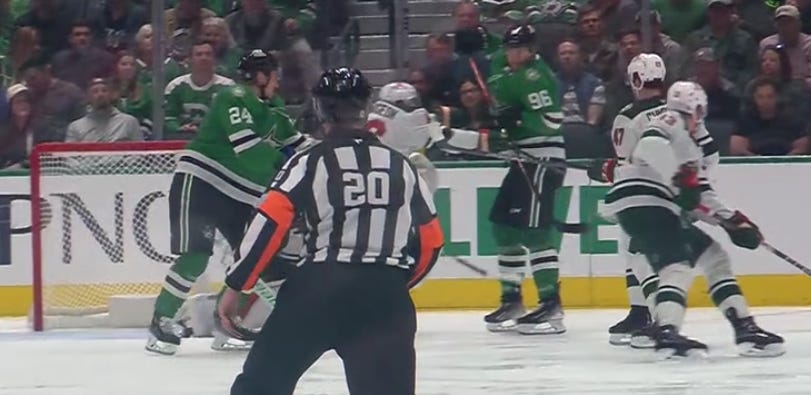 Dallas was riding high, and Roope Hintz showed that confidence to Matt Boldy with a big hit in the corner that looked pretty rough. Hintz did just barely get inside of Boldy’s shoulder before delivering the hit, however, and it would be Minnesota, not Dallas, going on the penalty kill with 1:29 to go in the second period thanks to a Jon Merrill infraction. It was another tripping penalty, by the way. You probably guessed that, though.