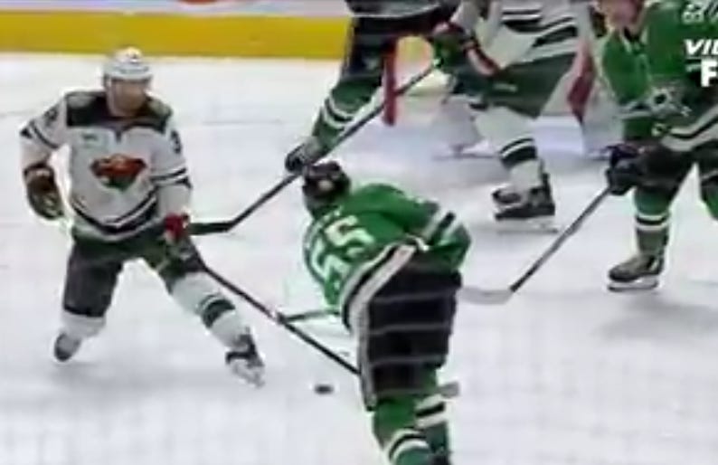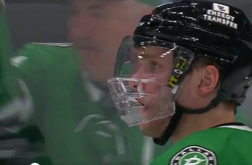 From there, things looked positive for Dallas, and the top line got some offensive zone time. But the universe decided it had been too long since the last Dallas Stars player had been hit in the face, and a Lyubushkin point shot wasit-high deflected up off a Minnesota stick and caught Rantanen right in the left cheek. Thankfully, it appeared to avoid his eye, and he skated off under his own power after a minute of being tended to on the ice.
