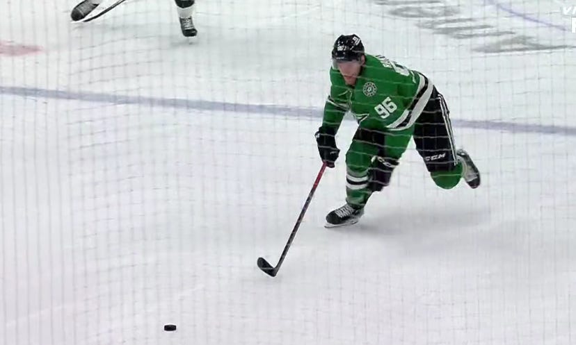 Rantanen could have had a couple goals tonight, easily. The Stars hit seven posts in this game: Roope Hintz hit the post on the Stars’ first power play. Robertson and Rantanen rang two apiece, and Marchment and Harley also tested the iron’s resilience.