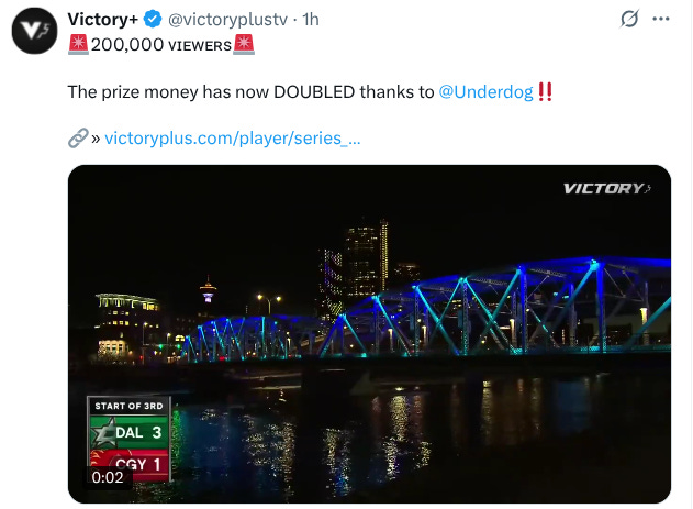 By all accounts, the Stars are thrilled with the success of Victory+. I grew up as a weird kid reading the Nielsen numbers in the newspaper every week, so I really would love to know how the various streaming services for different sports and teams compare.