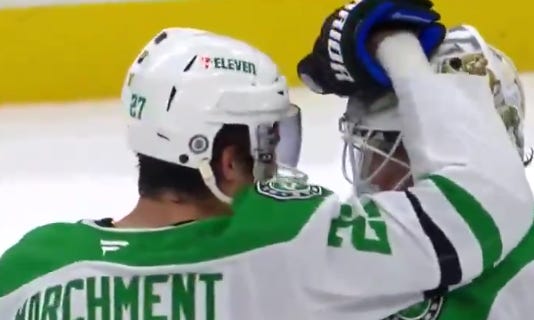 Marchment also put a tip play just wide from about 12 feet further out, and a Daccord glove save that he may or may not have seen kept Dallas’s second unit from extending the 2-1 lead as the second period wound down.