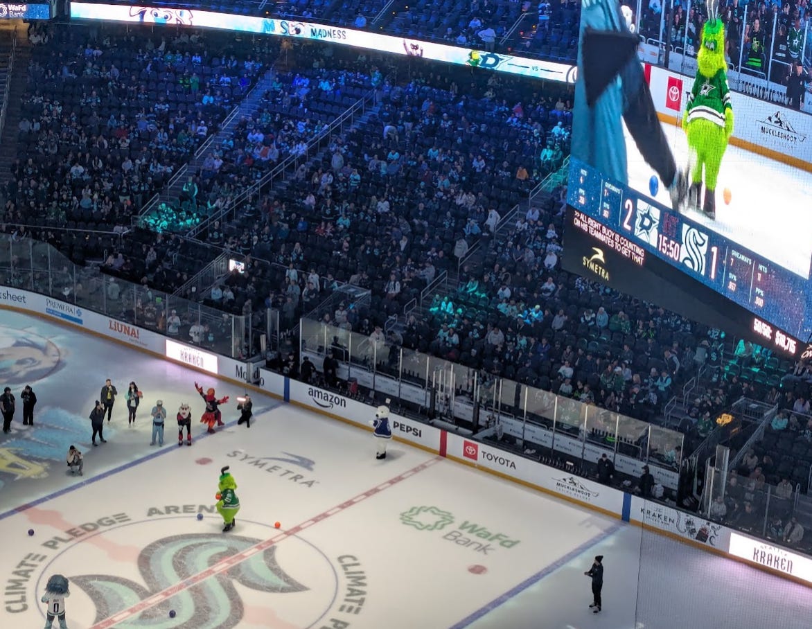The Kraken had a bit of a mascot convention Saturday night, with Victor E Green in town along with Buoy of the Kraken and Carlton the Bear from the Toronto Maple Leafs, as well as the characters from Coachella Valley and the Seattle Storm.