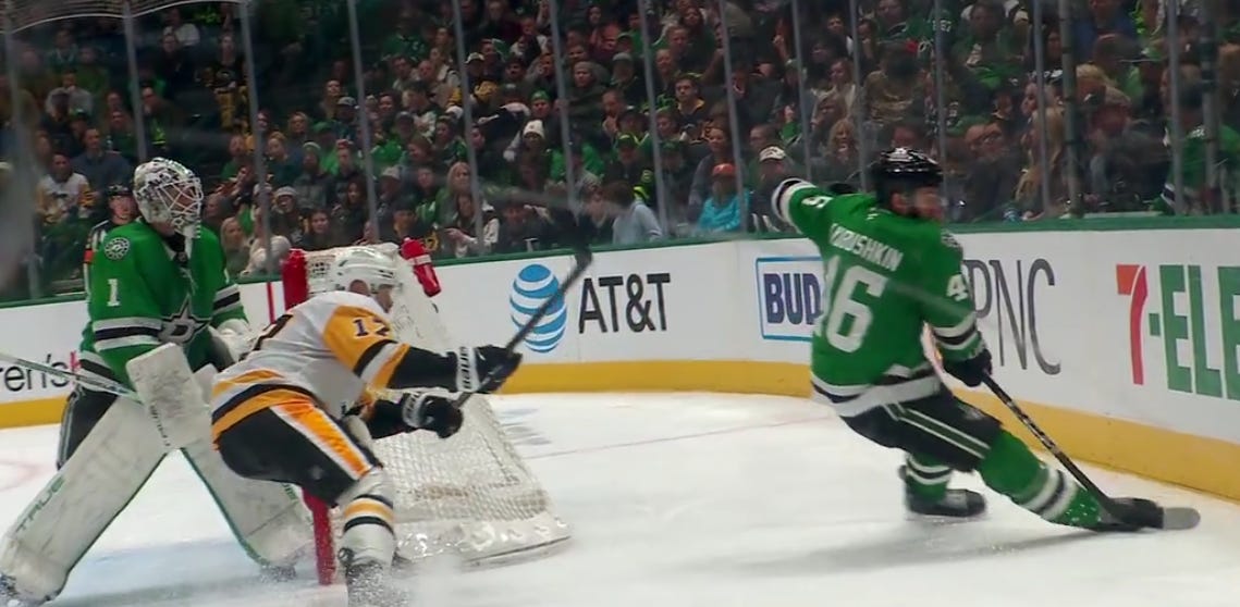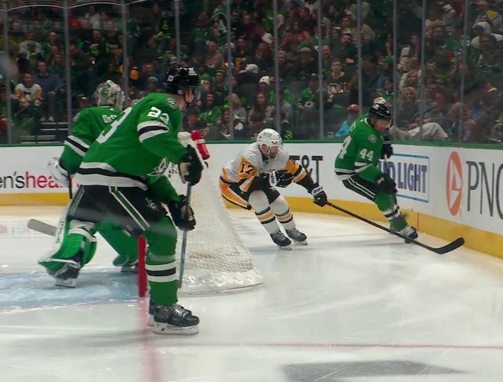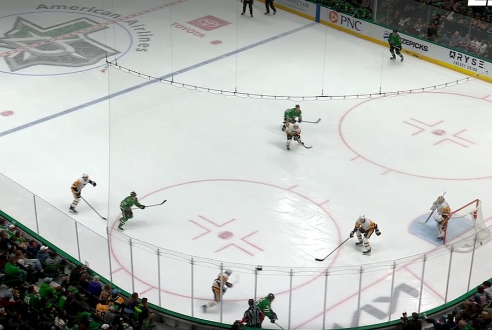 DeSmith bailed out his team on a couple of other mistakes and failed clearances, but as the Stars kept handing the puck to Pittsburgh with unforced errors, they finally took this recent defensive bit they’ve been performing past an unsustainable threshold, jumping the shark with their defensive zone play in a way even the actual San Jose Sharks aren’t doing right now.
