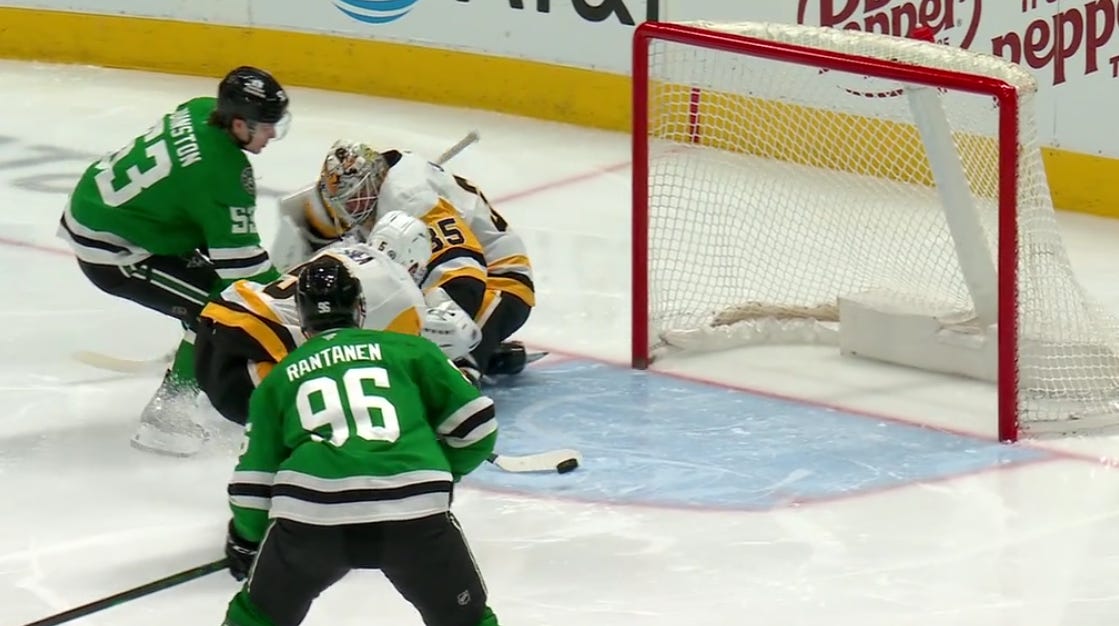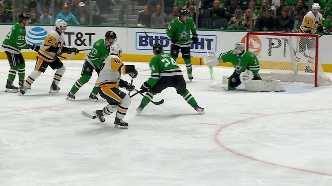 But both of those players are not the player, and the Stars got burned when Malkin found Sidney Crosby all alone int he slot after a puck went through Rutger McGroarty’s legs and perfectly to Crosby, who ripped it over DeSmith’s right shoulder to put Pittsburgh up 1-0.