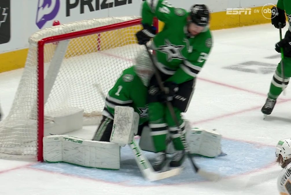 Ilya Lyubushkin took a hooking penalty to put Dallas back on the kill when he reached in and McGroarty grabbed his stick pretty blatantly in front of the corner referee, but only Lyubushkin got sent to the box. I personally wish officials would be more liberal with holding the stick calls in those situations, but I suppose they’re tough to see on the other side of the body.