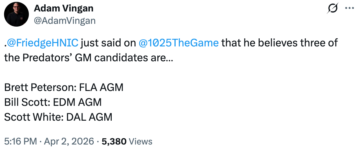 Some interesting Stars news, according to Elliotte Friedman: Assistant General Manager Scott White may be a candidate for the open GM job in Nashville: