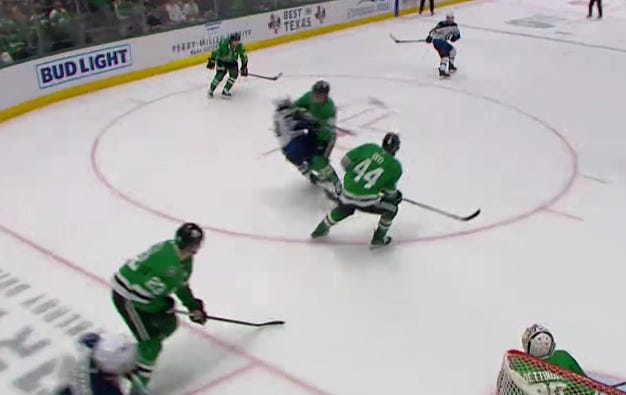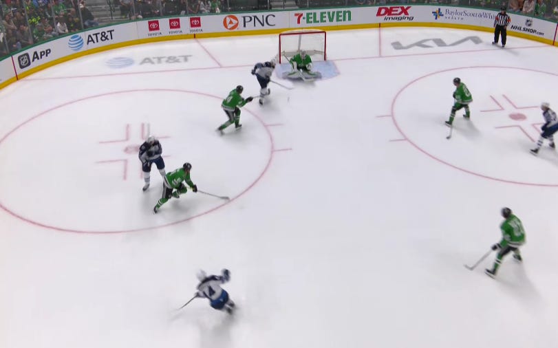 It was a painful reminder for Dallas of how costly any turnover can be, and how closely connected bad luck and great plays can be. Cody Ceci got a bit caught in between covering Lowry and Niederreiter on the play, and he ended up taking neither. But quick turnovers tend to cause confusion, which is why they are bad to do (hockey term).