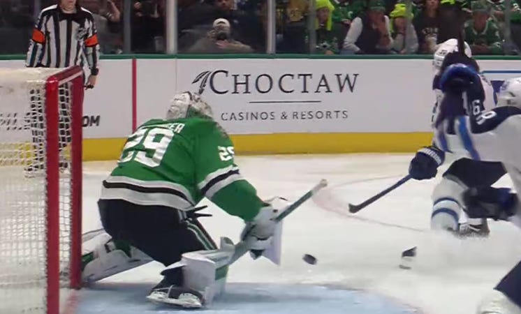 Winnipeg went to the power play, and Oettinger was sharp on a couple of one-timers, with Dallas killing things off summarily after that.