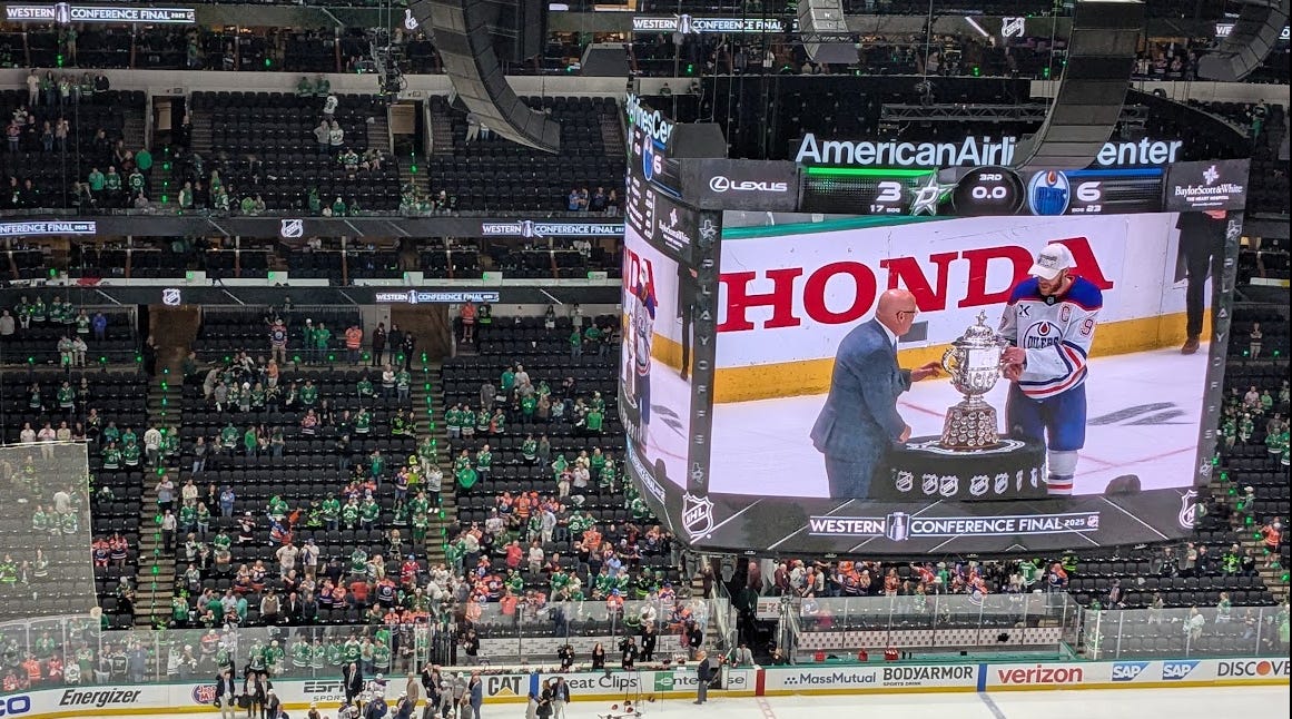 They didn’t stick around to see Connor McDavid awkwardly try to hoist the Campbell Bowl with Bill Daly, so at least they were spared that indignity. Watching the best player in the world try to very demonstrably Do the Opposite of what he did last year was no fun for anyone except Oilers fans, being less of a celebration and more of a performative display. But then, what else would any trophy presentation be?