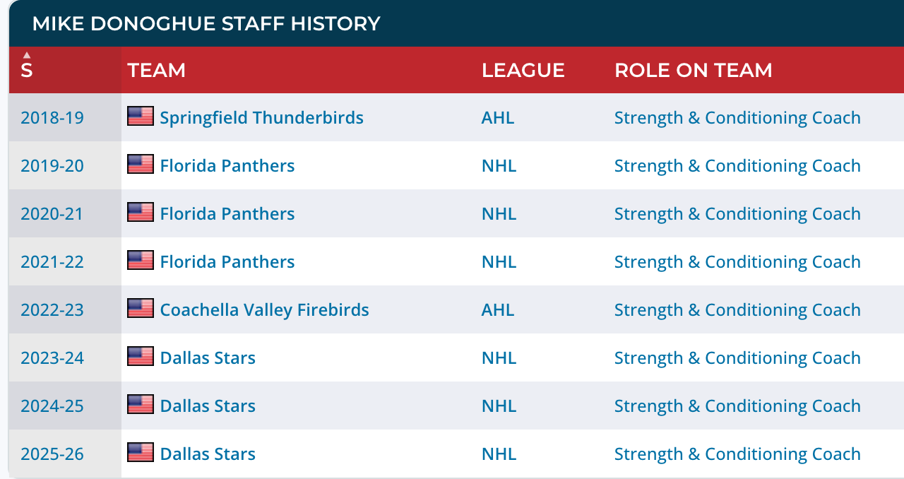 That’s where Mike Donoghue comes in. Since 2023, Donoghue has been the Stars’ head strength and conditioning coach, and longtime Stars Thoughts readers will remember Donoghue’s comprehensive plan to address the Stars’ jetlag during their trip to Finland last season.