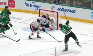 This was from a 2021 November game against the Oilers in which Dallas beat Edmonton 4-1, snapping Connor McDavid’s 17-game points streak to open the season in the process. Dallas received five power plays to Edmonton’s two, and you could see a desperate McDavid attempting to draw a late penalty against Jason Robertson, which (if memory serves) was successful. Robertson was sent to the box in the third period for interference on McDavid. It wouldn’t matter, and by the way, Robertson would score a power play goal of his own in this one, beating Stuart Skinner’s glove hand with ease.