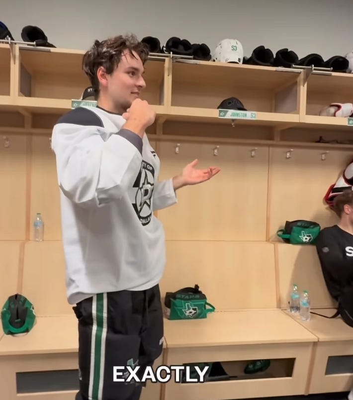 Toward the end, Wyatt Johnston and Mavrik Bourque get into a little bit of a debate about just how good of a steak Johnston can grill. As you can see on the video, Bourque wasn’t terribly impressed.