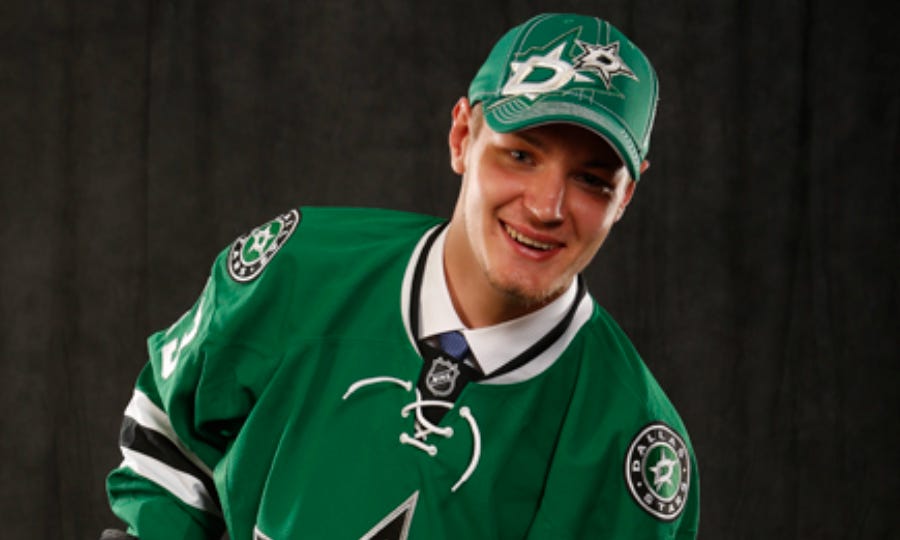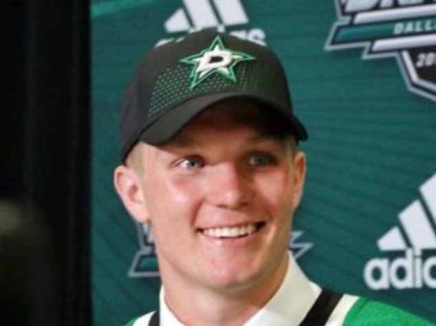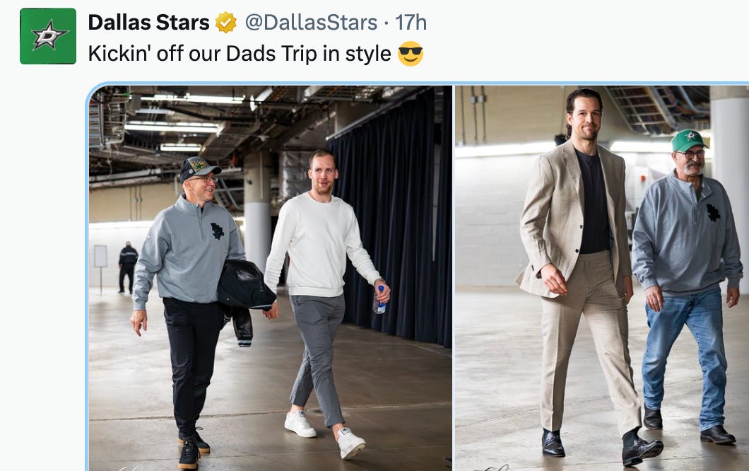 I didn’t get a chance to confirm this in the postgame madhouse that was the Stars’ packed dressing room—Gulutzan had all the fathers brought inside, which made it a delightful conglomeration of paternity—but I am 99.9% certain that the elder Mr. Faksa was sporting his son’s draft day hat: