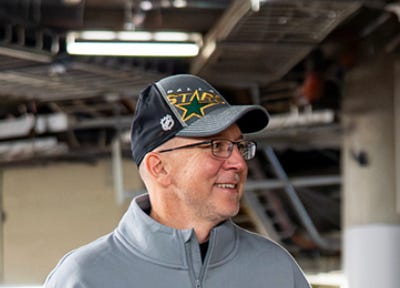 Look a bit more closely at Radek Faksa’s father, and you’ll notice he’s wearing a hat with the old Stars logo on it—and it doesn’t appear to be a recent throwback hat.