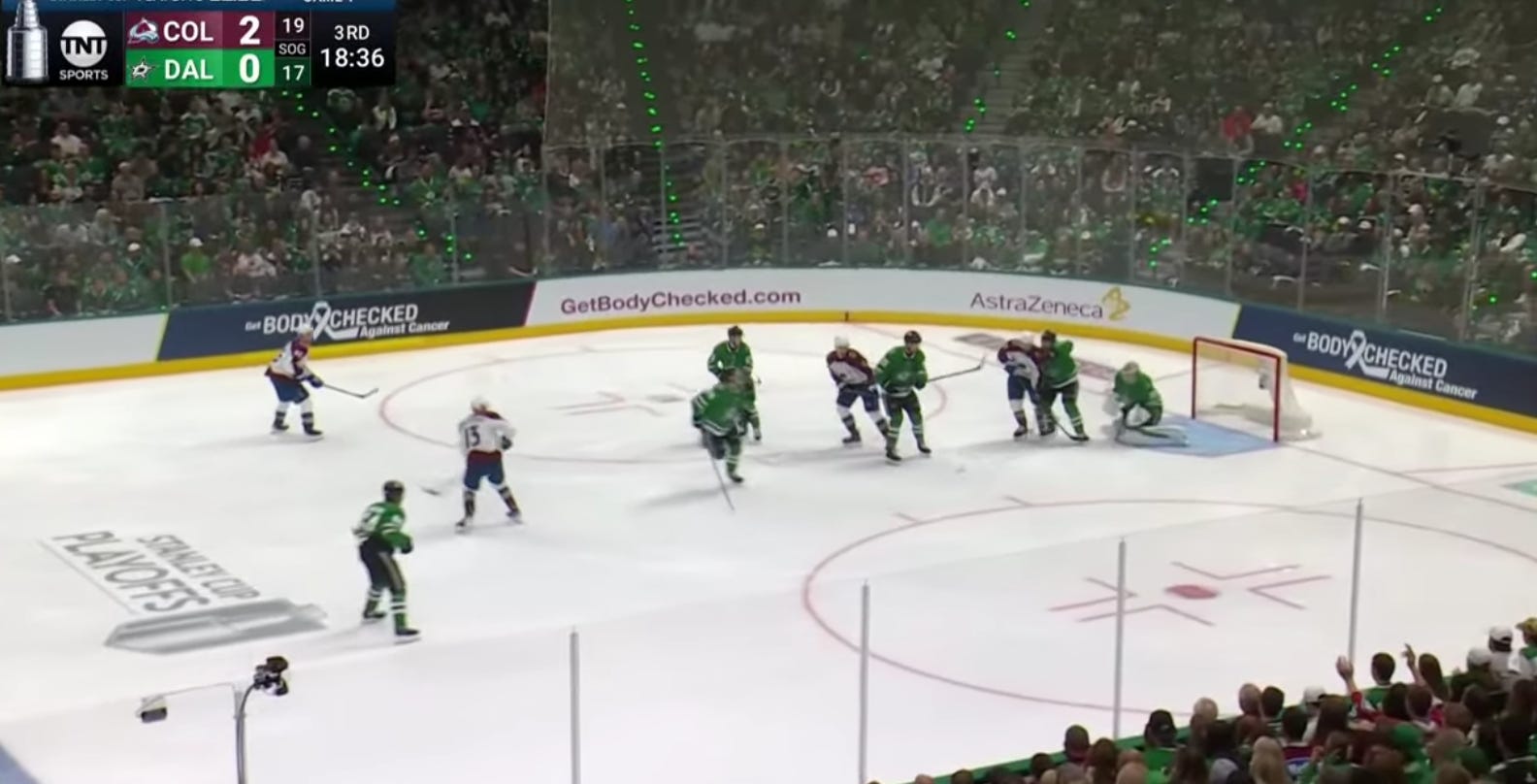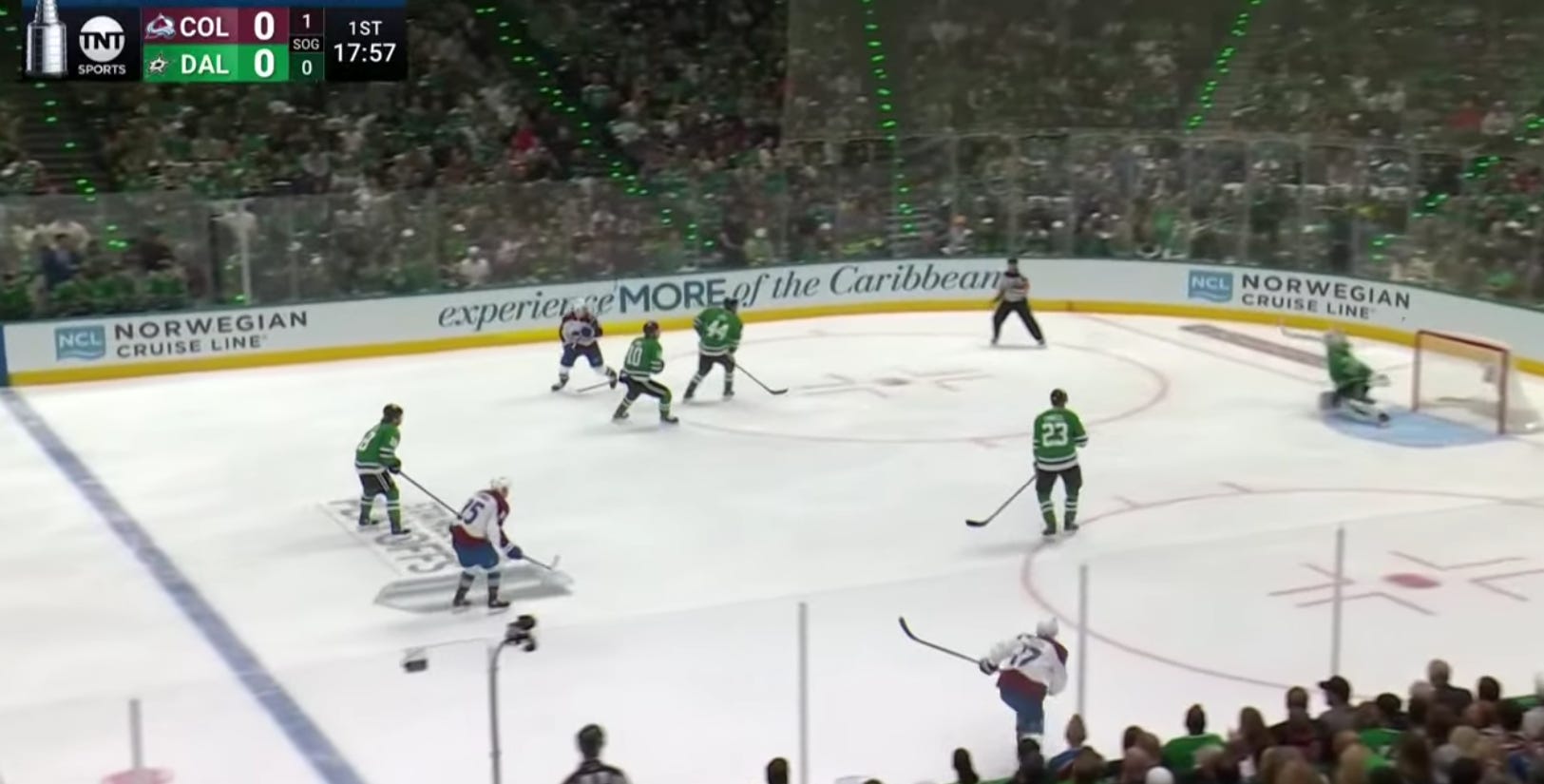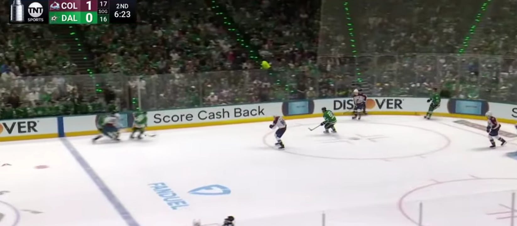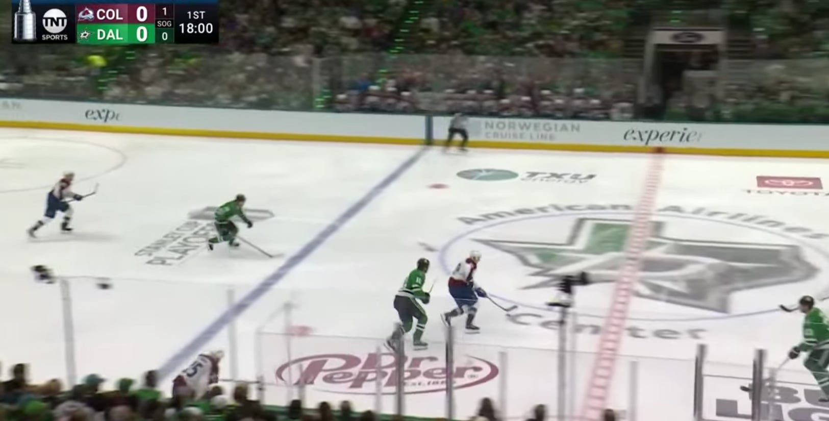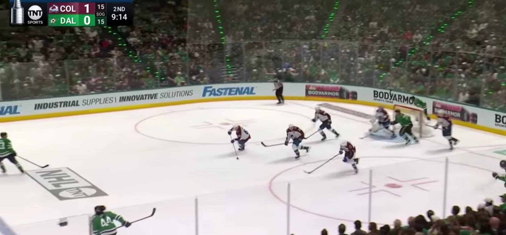 The point here is that the Avs were allowed to come back down and gain the blue line for free after the Stars overpursued down low in the offensive zone and got beat cleanly, and it all ended in an easy zone entry and, eventually, a prime scoring chance for Colorado.