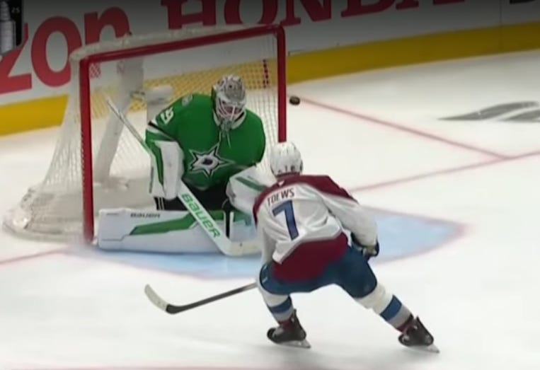 Of course, MacKinnon would score on the subsequent power play, so I’d argue the Stars did get burned by all three forwards crashing below the goal line, or at least by one of them not taking better care with his stick.