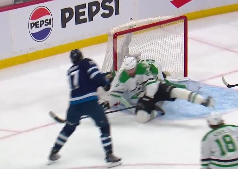 This was feeling more and more like Game 4 in Colorado with each passing minute, though Dallas wasn’t getting outplayed quite as drastically. But with Hellebuyck making a couple of dynamite saves to crush Dallas’s attempts to get back into the game, it felt similarly demoralizing after 40 minutes.