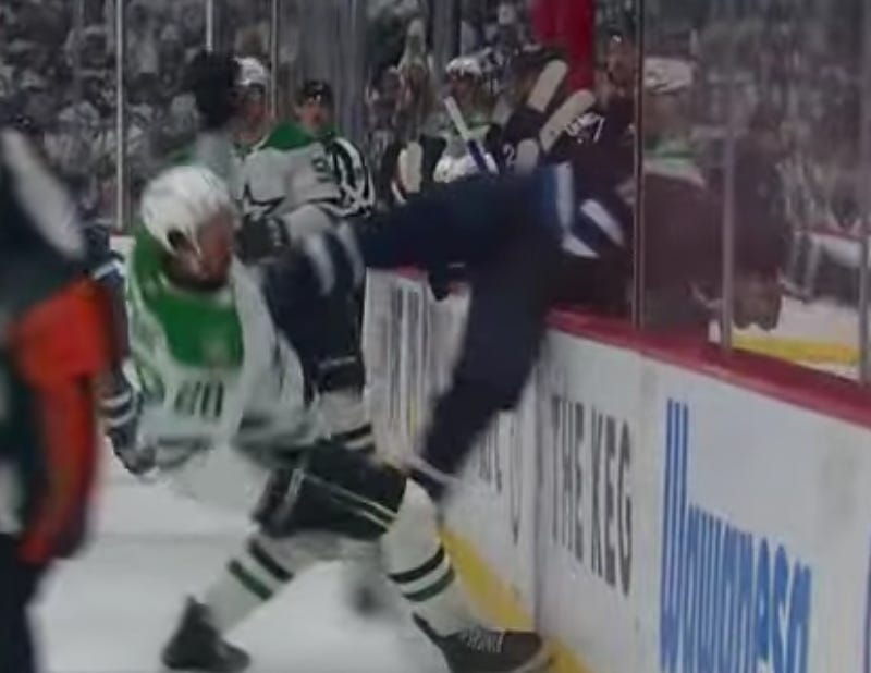 So the period ended 3-0 to Winnipeg, and Dallas would have most of a penalty to kill to start the third.