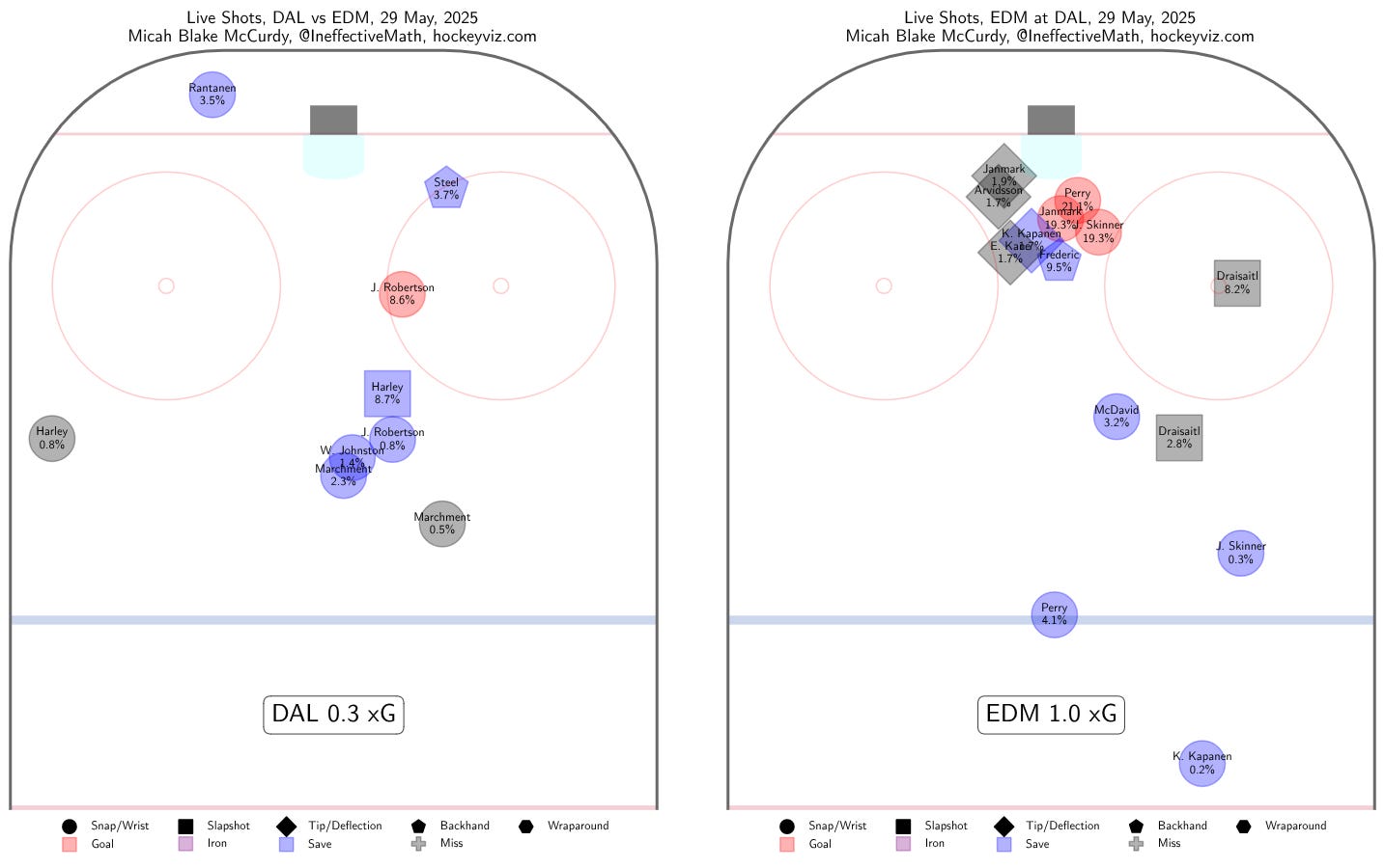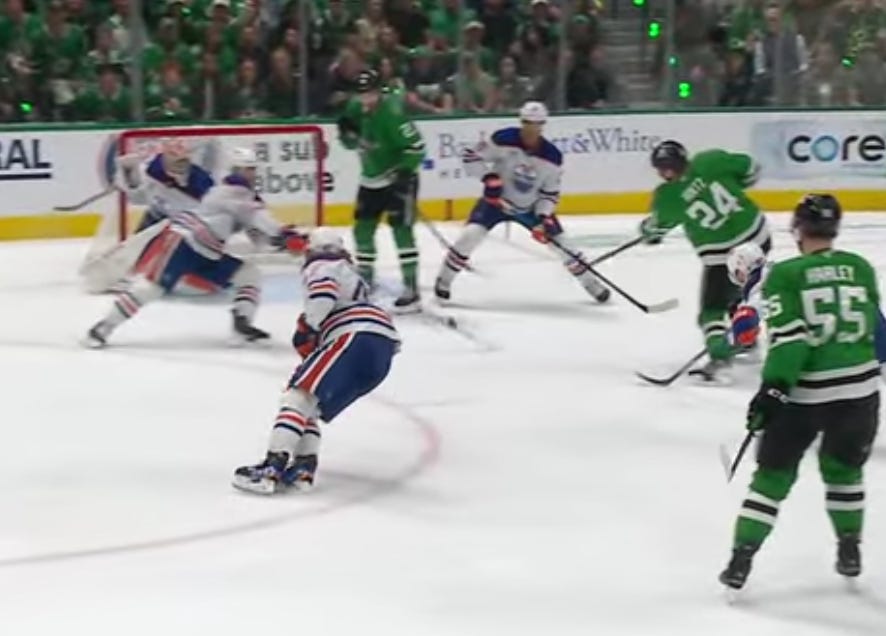 Stuart Skinner had his moments in this series, but the Stars didn’t force him to be anything more than Chris Osgood for long stretches, and that was more than enough for Edmonton, who won the race to three goals in every game in this series. Only a torrent of power play goals by Dallas in Game 1 made this series even somewhat competitive, just as Roope Hintz’s power play goal did in this game, when the Stars cut the lead to 3-2, and things seemed just barely possible again.