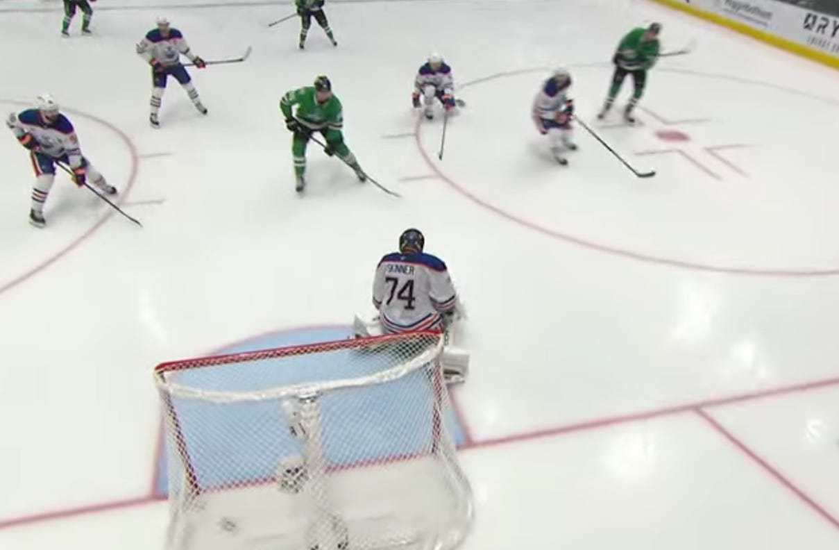 Robertson ripped the puck over Skinner’s pad and off the far post and in to get Dallas on the board with a much-needed goal. 3-1, Oilers.