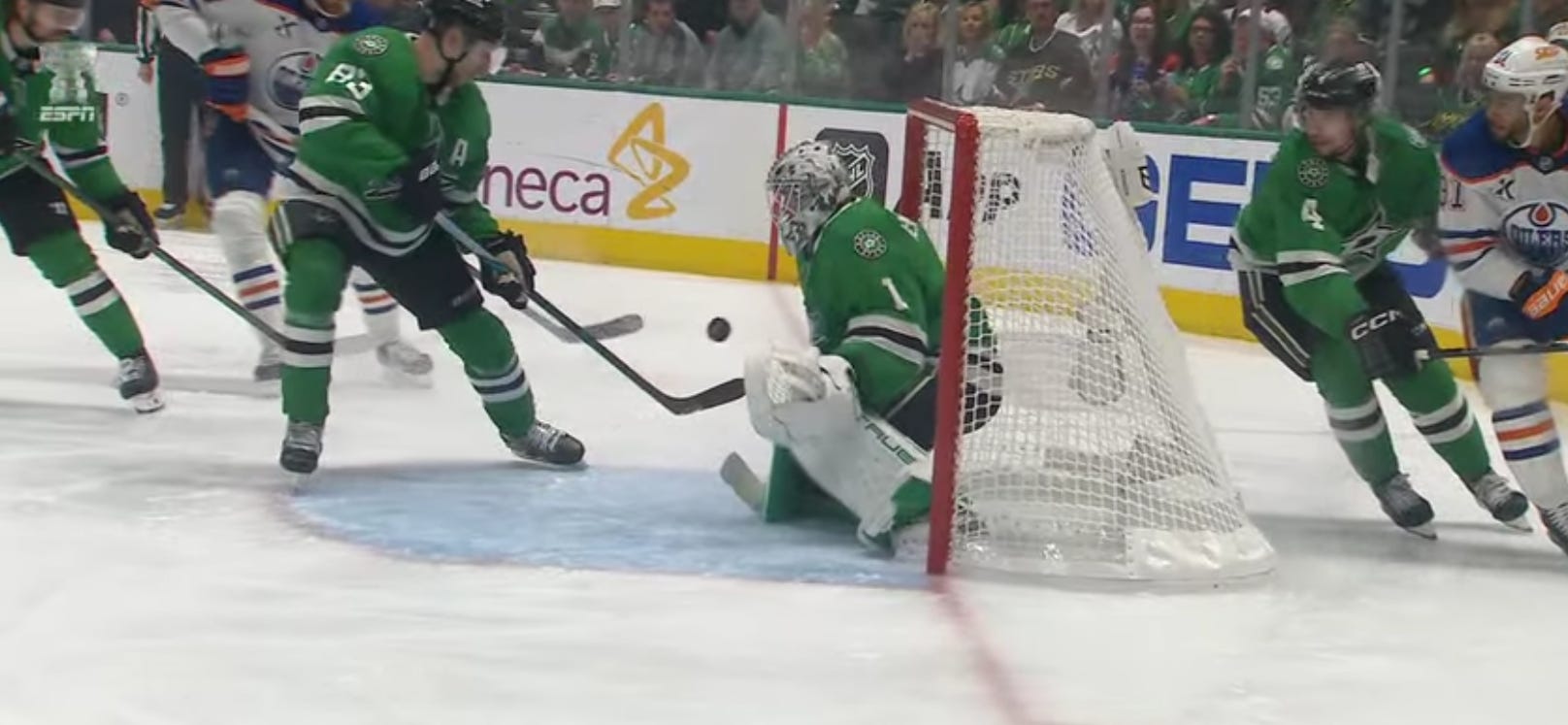 DeSmith would save his first shot, but not his second, as the Oilers once again overwhelmed the Stars at the net front just a minute later after Petrovic failed to clear a puck along the boards. So Jeff Skinner, in just his second career playoff game, poke a poke that rattled through DeSmith’s five-hole and went in.