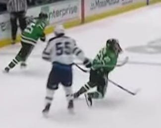 Nino Niederreiter decided to copy Tyler Seguin by taking an immediate high-sticking penalty, giving Dallas a power play in the first minute of the game.