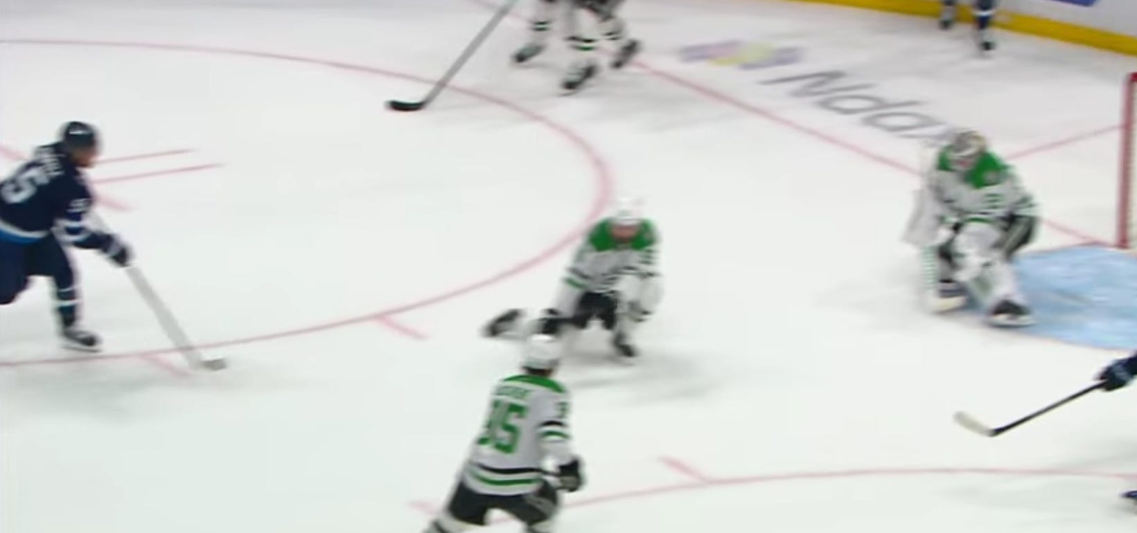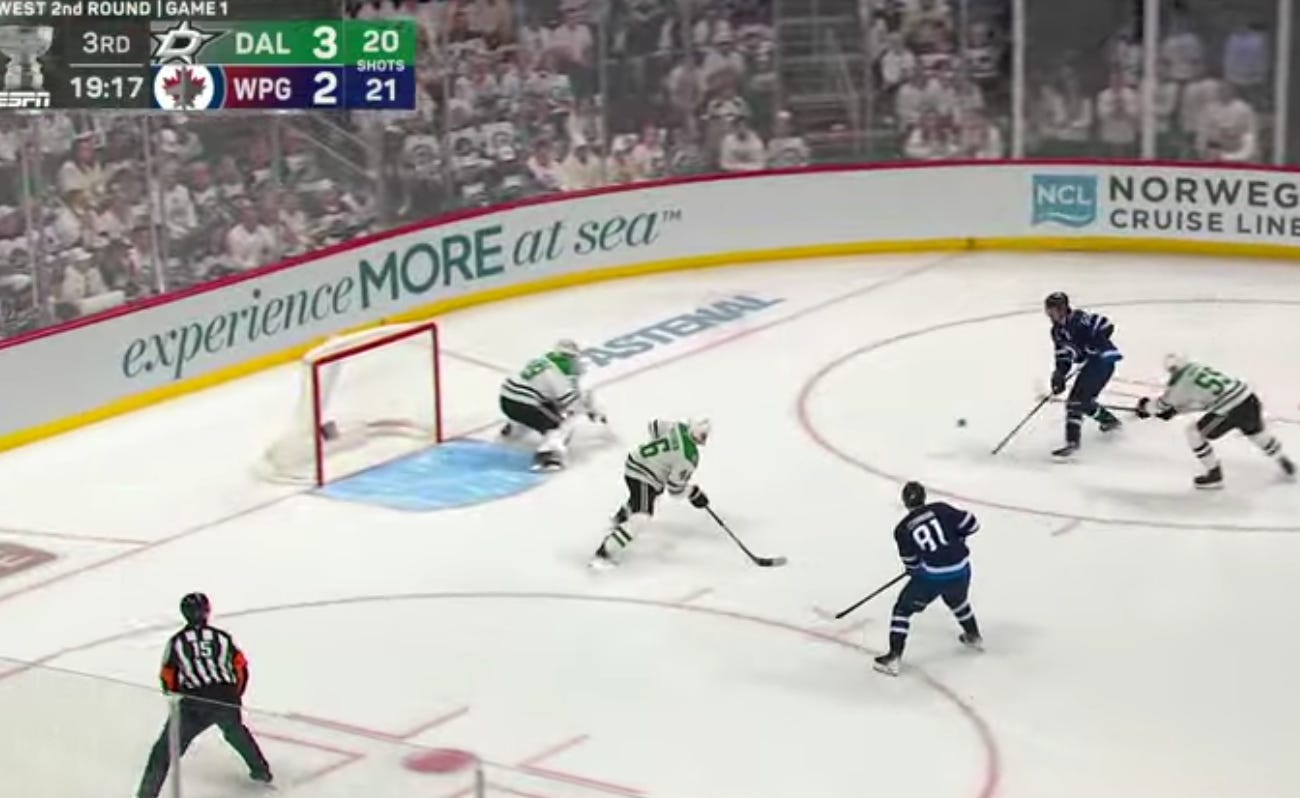 Unfortunately, the party was spoiled a bit when Benn tried a reverse play that only gave a puck away below his own goal line, leading to a wide-open shot from the front stoop for the Jets’ top center, and Scheifele would not miss it, cutting the Dallas lead back to 3-2.