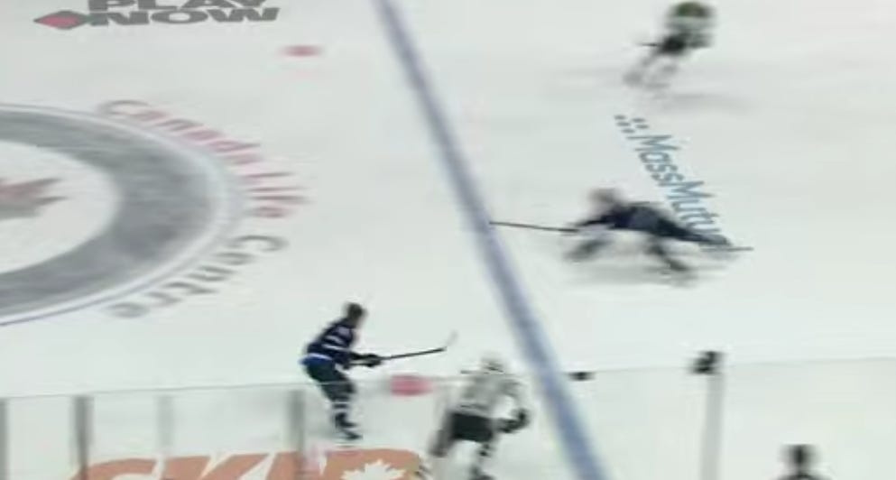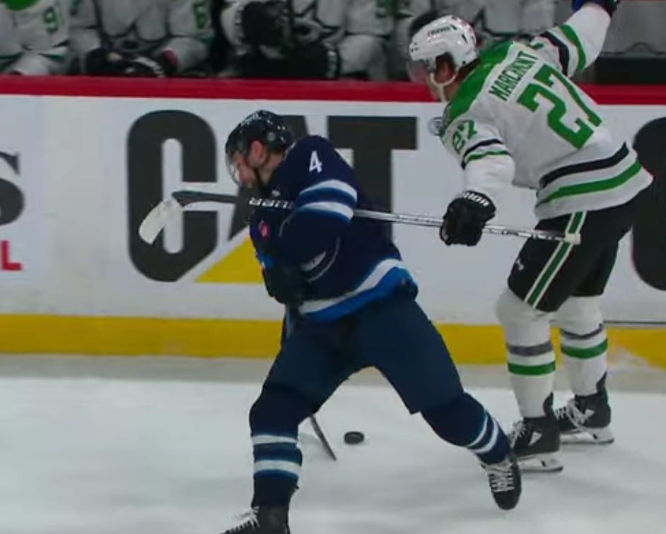 Dallas wouldn’t get much going on the rest of the power play, and in fact would cancel out the last bit of it when Seguin’s stick just caught Pionk, who was bending over during a face-off scramble, in the side of the helmet for penalty to make it 4-on-4 for 19 seconds before Winnipeg got their fourth chance of the game to score a power play goal, still trailing 3-2.