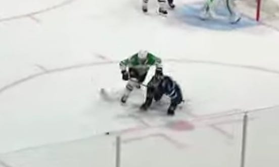 Jason Robertson then got subjected to what looked like a pick play where he went down a bit easily, but was actually an elbow square in the face, which would send any human being reeling, as it did Robertson.