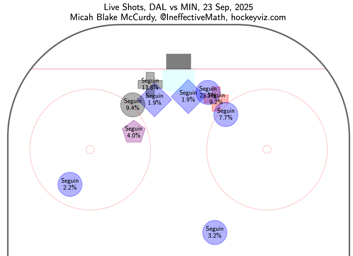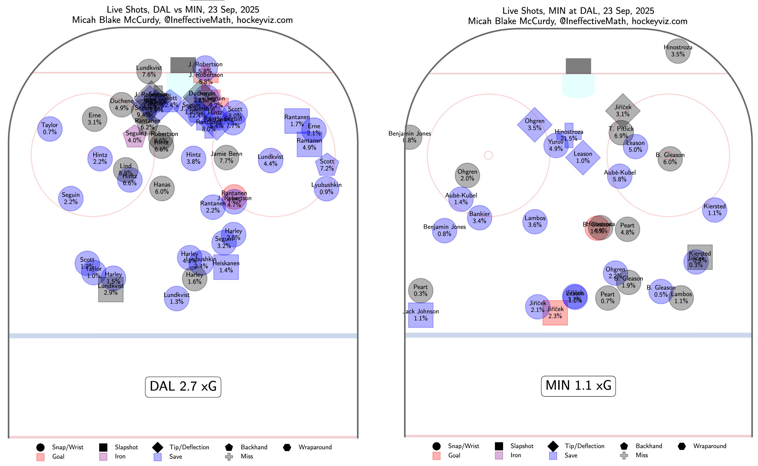Dallas’s penalty-killing forward pairs were a bit different without Dallas’s usual complement of Steel, Blackwell, Bäck, and Johnston. The Stars rolled out Hintz with Erne, then Ertel with Shlaine, and some other folks along the way. The preseason makes for interesting things like that.