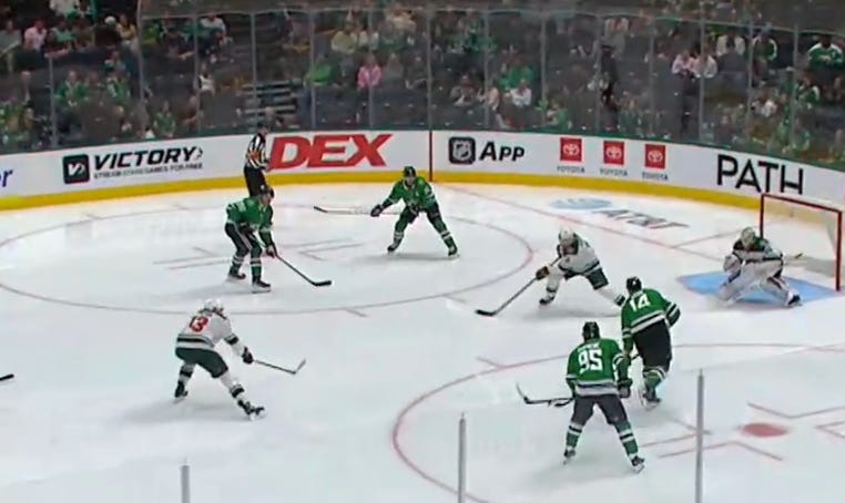 Jason Robertson got a breakaway right after Tyler Seguin left the penalty box, and while he missed high far-side, the Stars collected the puck and tried again.