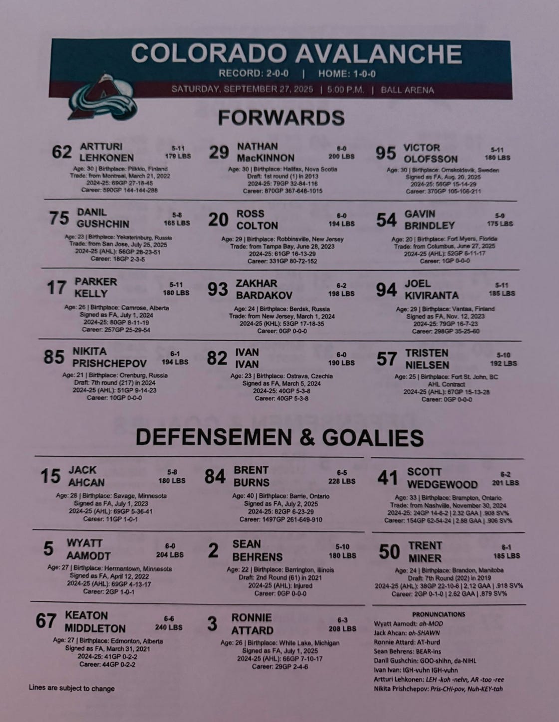Some Noticeable Players from Saturday Night’s 4-1 Loss in Colorado