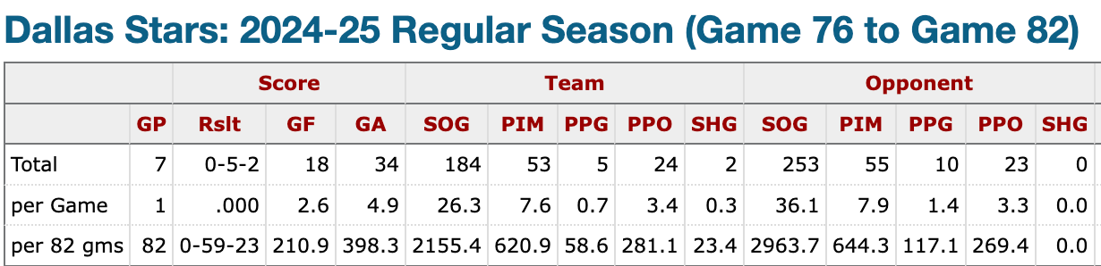 Even when Tyler Seguin returned in the 82nd game and his line immediately got on the board, the boost was quickly negated by not only five Nashville goals, but by Jason Robertson’s horribly timed injury, too. I suppose all injuries are badly timed, really.