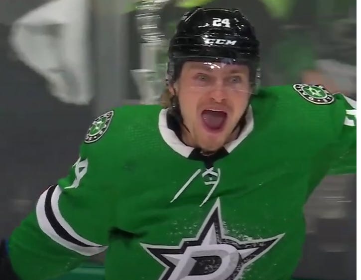 Johnston is kind of incredible, which is best demonstrated by the fact that he had a really slow start to the season (like Robertson) and then finished two goals behind the team lead (to Robertson). Also, Johnston has scored some huge playoff goals for the Stars before, with none bigger than his Game 3 overtime goal against Vegas last year, or his Game 7 goal against Seattle (they have a hockey team now) the year before.