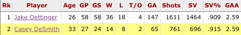 If DeSmith is starting a game, it is because something went dreadfully wrong. But if DeSmith has to start a game in exigency, the Stars have every reason to believe he can lead them to victory. He’s the luxury of luxuries: a backup goaltender who put up an identical goals-against average to the starter.