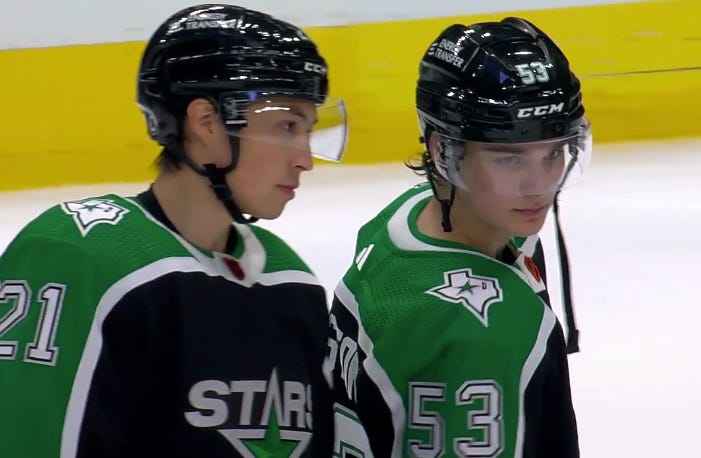 The other players on Benn’s line look like they’ll be Wyatt Johnston and Mikko Rantanen. Johnston is 21 years old, which you don’t have to memorize because trust me, you will hear that every game. Also, did you know he used to live in Joe Pavelski’s house? Again, no need to memorize that one.